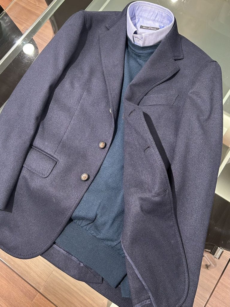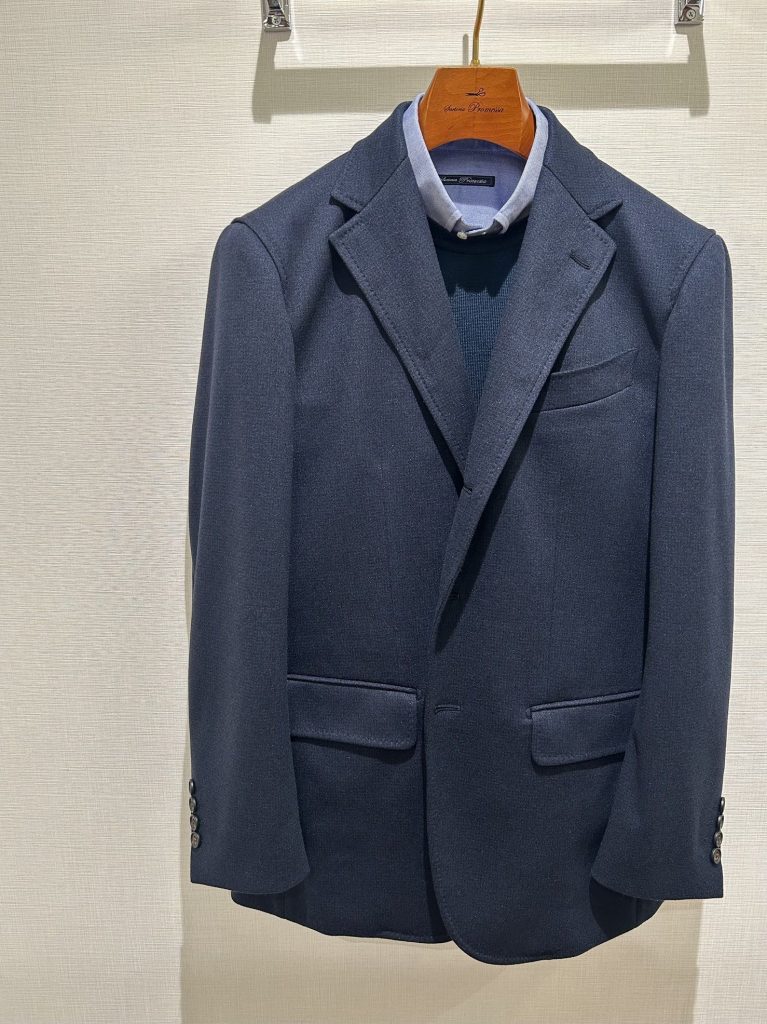 ノータイスタイルにもばっちりハマるサルトリアプロメッサのライトメイキングジャージジャケット。