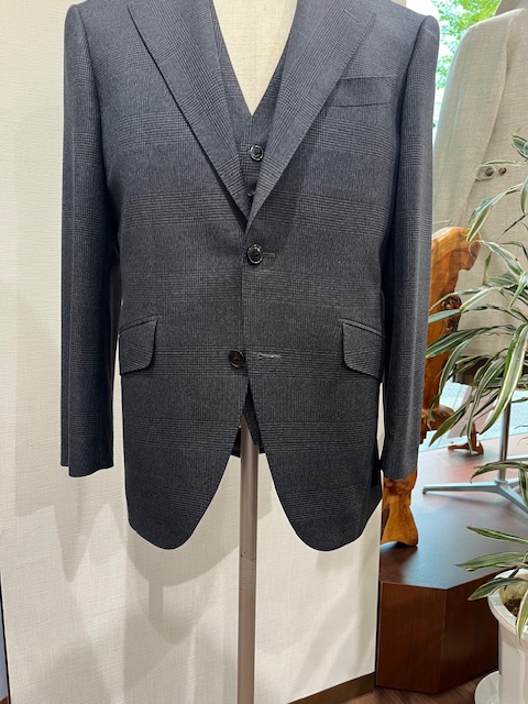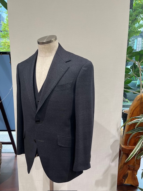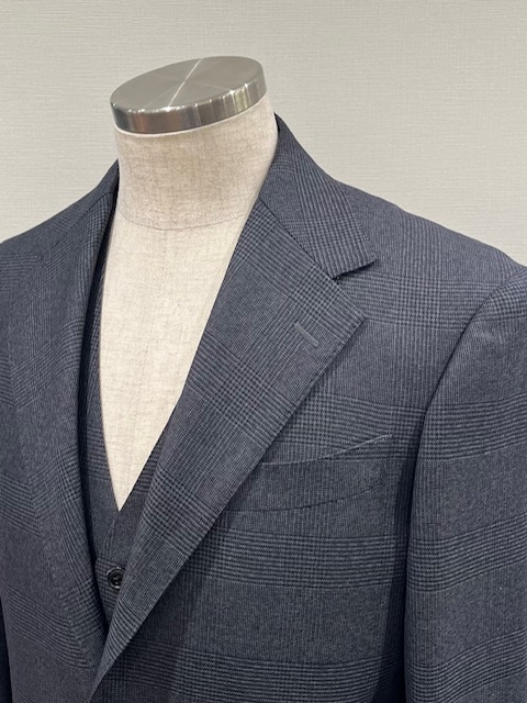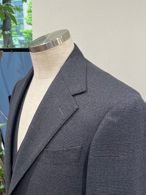 こちらは、ご紹介した生地で仕立てましたサルトリア プロメッサのオリジナルパターンの【 Firenze Cut 】フィレンツェカットになります。