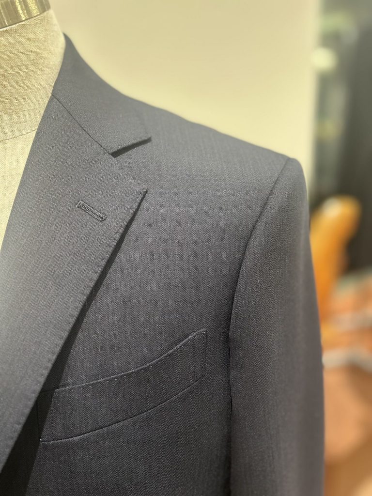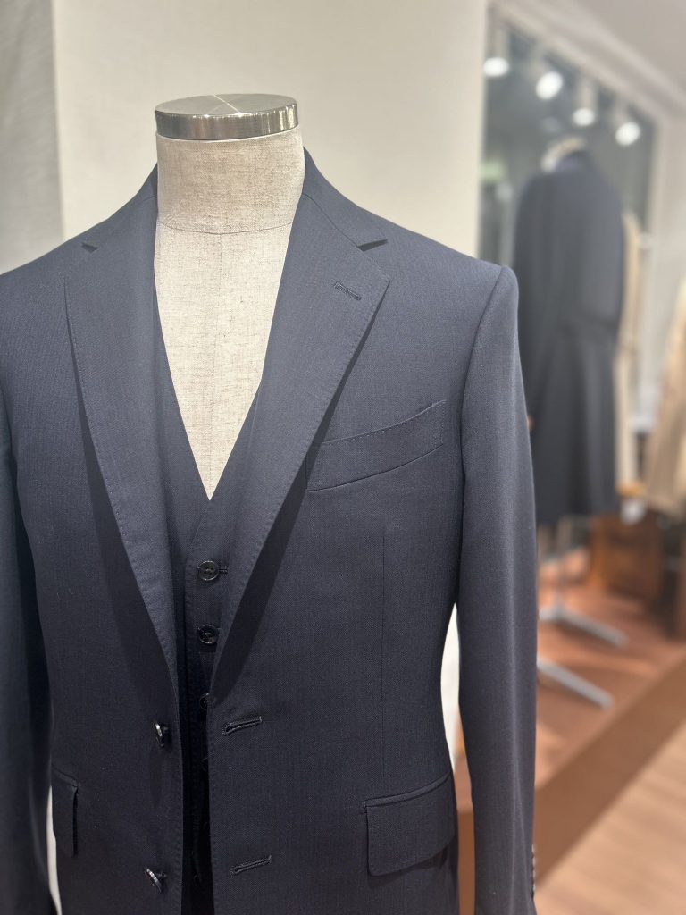 若干細めのラペル幅もシャープな印象で若々しさも感じます。