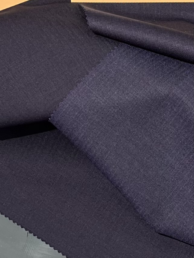 今回オススメのダークネイビーのシャドウストライプの生地になります。