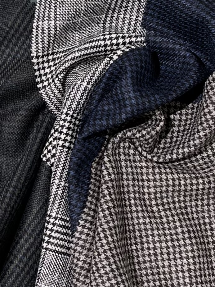 チェック柄のコート生地は、柄の大きさ、色によってさまざまな印象を与えます。