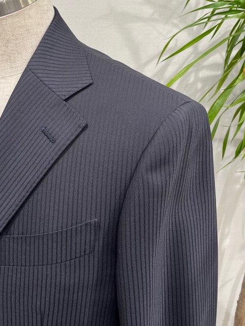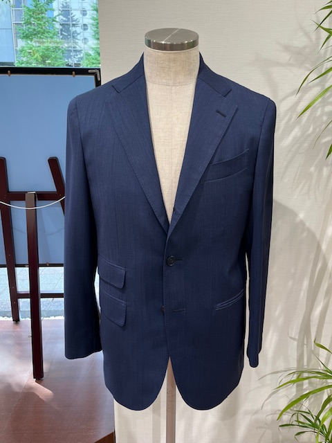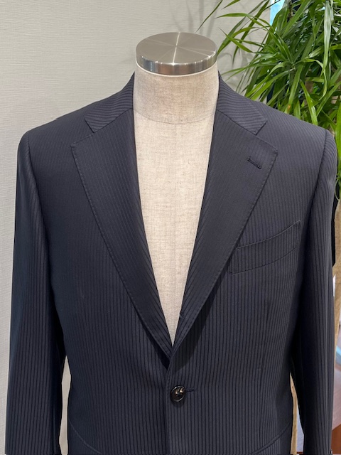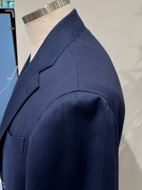 ナポリ服の持つ独特の軽さや柔らかさを保ちながら、ビジネスシーンに映える流麗なシルエットが特徴になります。