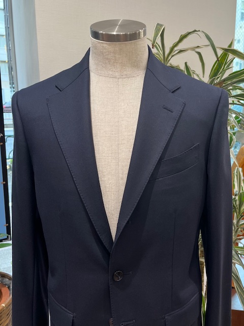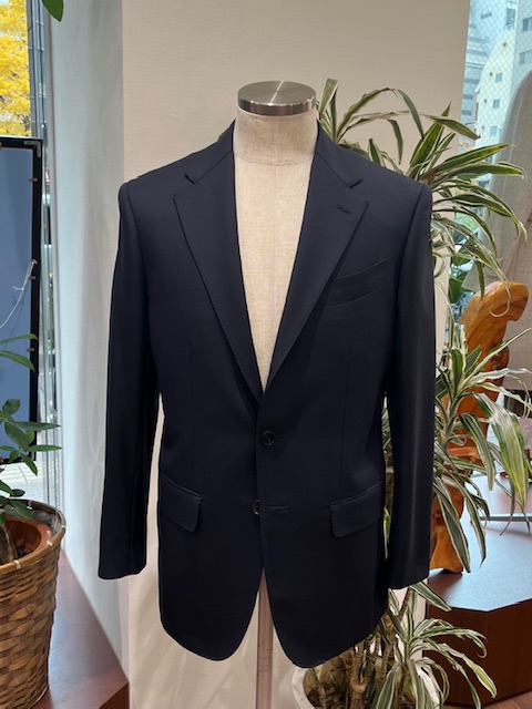 今回は、長大毛織のリンクルケアーのネイビーの無地をご紹介いたします。