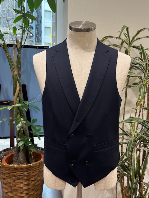 優雅でありながら、前に出過ぎない究極の普通を演出するローマンルックモデルには、ダブルのベストを組み合わせてより重厚感とエレガントさを演出し、クラシックな印象を強調して見てはいかがでしょうか。